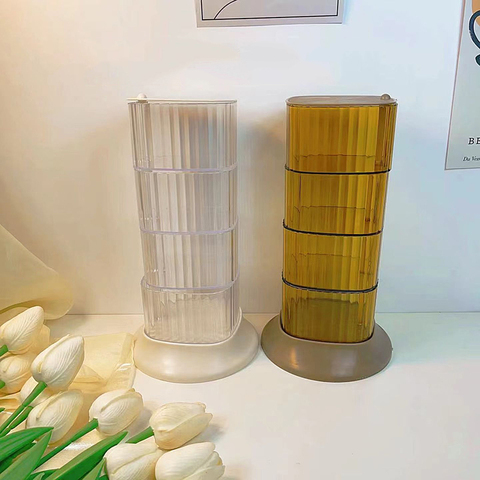 กล่องเก็บเครื่องประดับ360ชั้นหมุนได้4ชั้นกล่องเครื่องประดับเครื่องสำอางใสหลายชั้นที่เก็บเดสก์ท็อป