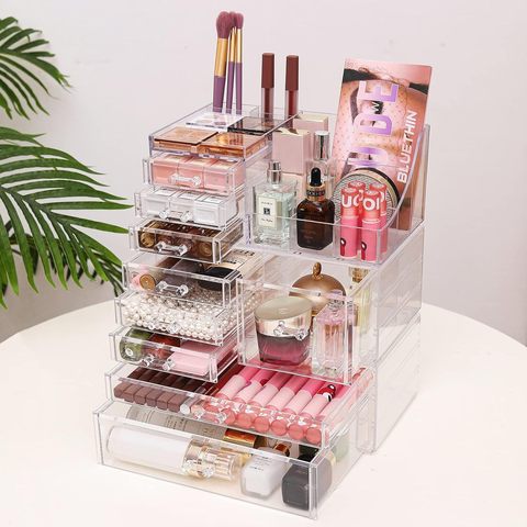 ที่จัดเก็บเครื่องสำอางแบบใสการแต่งหน้าง่ายเครื่องประดับผมเคาน์เตอร์หรือโต๊ะเครื่องแป้งในห้องน้ำโปร่งใส